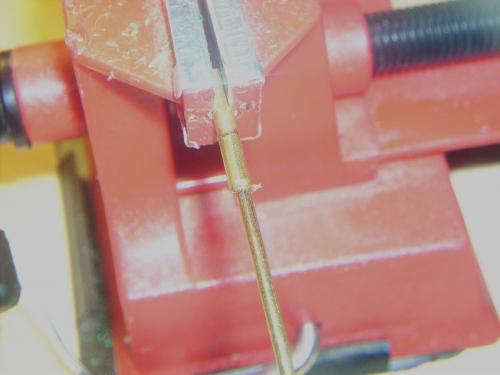 Dieser entsteht aus Messing-Rohr zweier unterschiedlicher Durchmesser: Profile mit 2,4mm und 1,4mm Außendurchmesser passen bündig ineinander, so dass ein geschweißter Lampenmast imitiert werden kann.