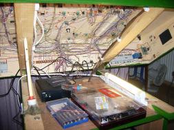 Anschließend werden die Schalter etc. eingesetzt und von unten verschraubt. Die Stellung der Weichen zeigen bei mir Reihen von LED's an. Die Elektronikmärkte bieten dazu häufig "Spar-Angebote". Meine LED's entstammen einem Set mit 100 LED's für damals 15DM.
