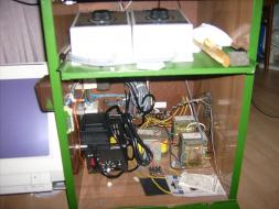 Dieser befindet sich hinter der Frontklappe des ehemaligen Nachtschrankes. Hier sind die leistungsstarken Trafos angeordnet, die alle benötigten Spannungen liefern.