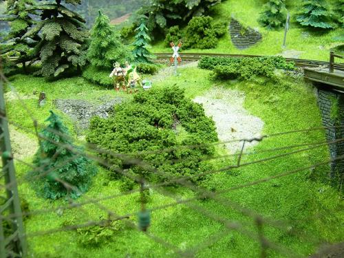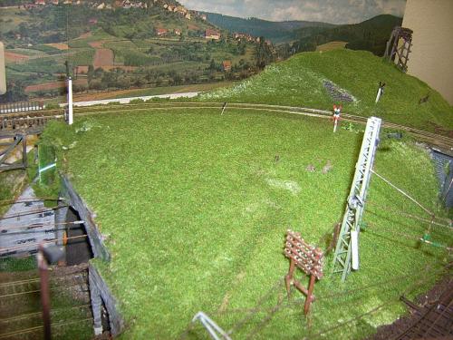 Meine Geländeoberfläche besteht inzwischen durchgängig aus einem Belag von Papp-Maché, dessen Herstellung ich bereits auf einer Seite demonstriert habe. Selbst ebene Rasenflächen sind damit belegt.