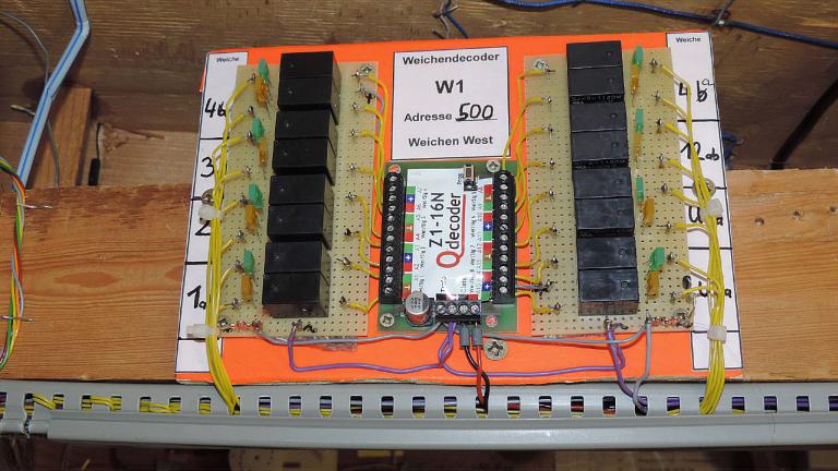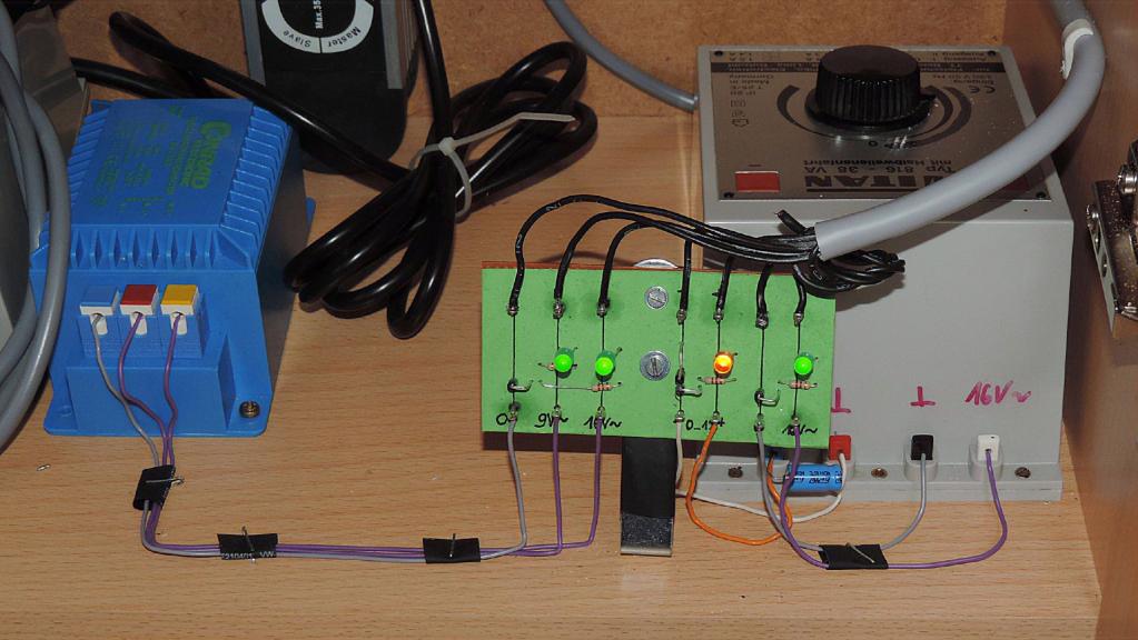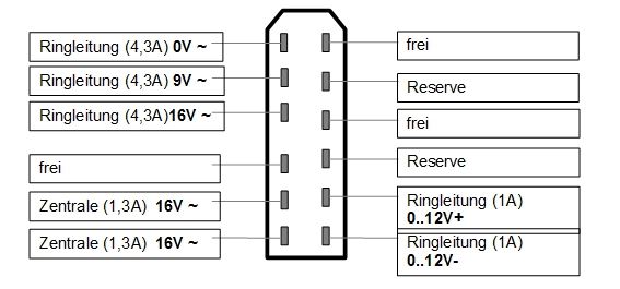Die 9V und die 12V Potenziale liegen zwar an, aber bisher benötige ich sie nicht. Der Gleichstrom war mal für Soundmodule gedacht, aber den Sound spielt jetzt die Software Rocrail mit ab, so dass ich momentan keine extra Module unter der Anlage betreibe.