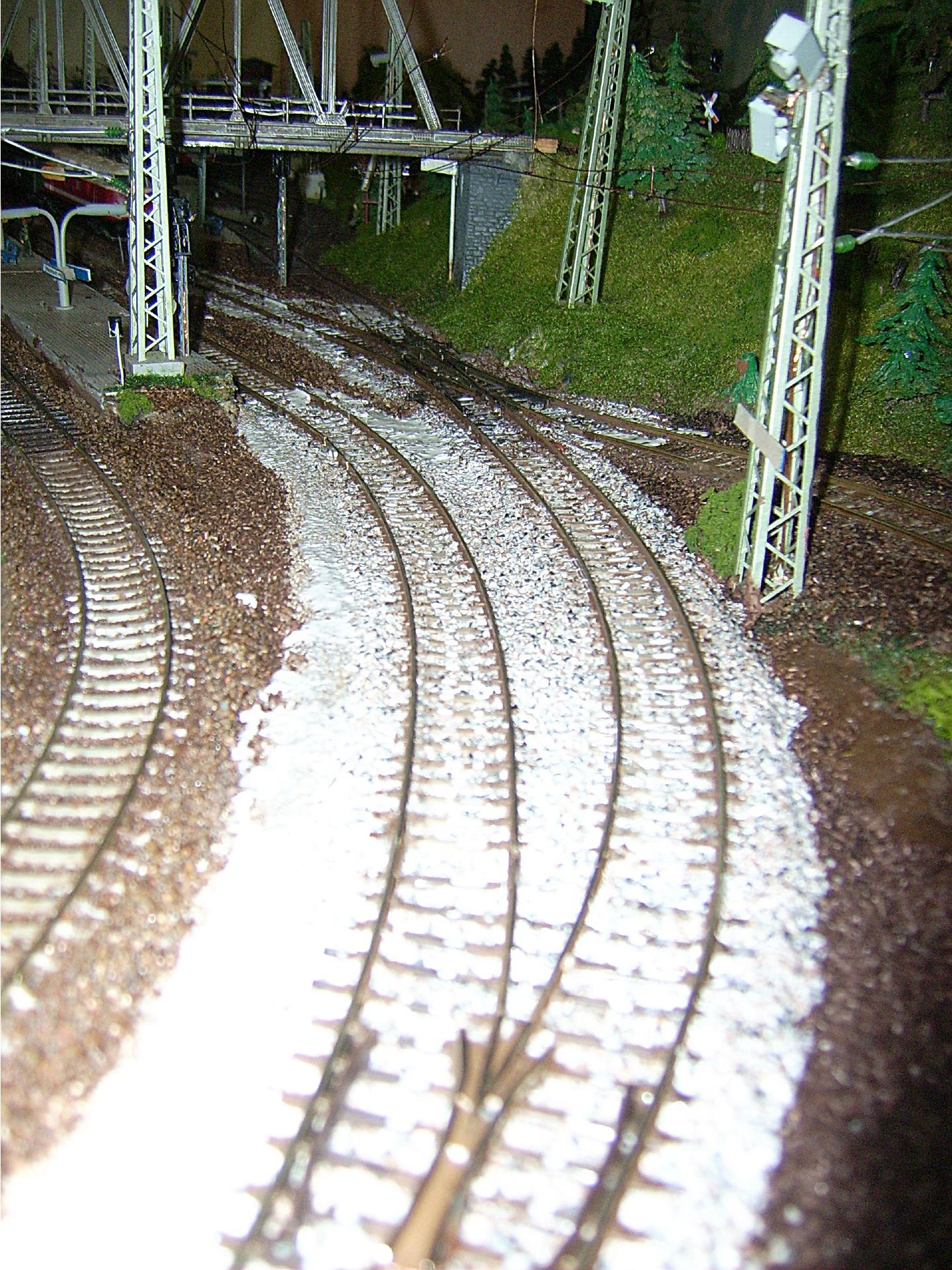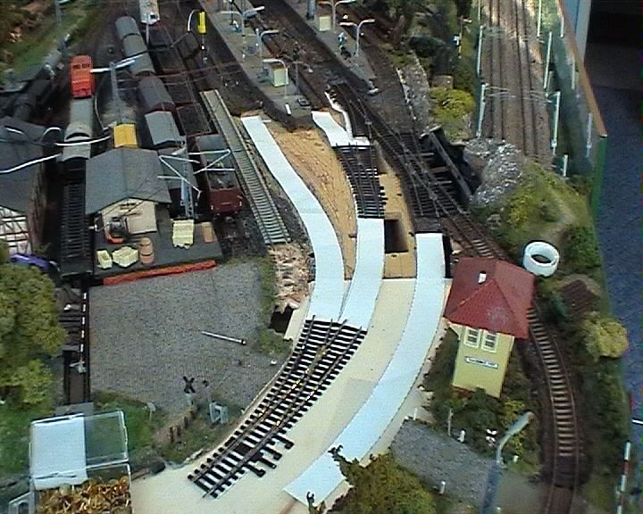 So habe ich mich vor Jahren dazu entschlossen, die komplette Gleisanlage herauszureißen und neu aufzubauen. Auf dem "oberirdischen" Teil kamen dabei grundsätzlich Flexgleise ohne Bettung zum Einsatz. Ich habe diesen Schritt bis heute nicht bereut !